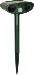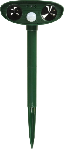 Denne afviser har en driftsafstand på 6 til 8 meter, så den dækker store områder som haver, frugtplantager eller rekreative områder. Den er lavet af holdbar plastic i grøn farve, der blander sig med omgivelserne og er vejrbestandig.
