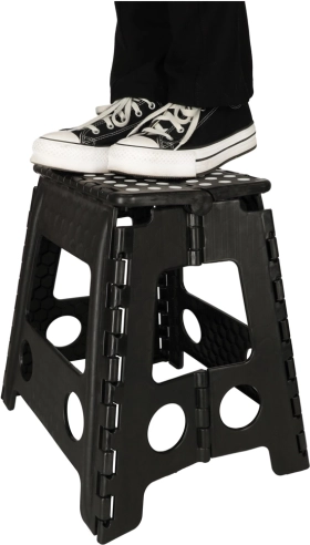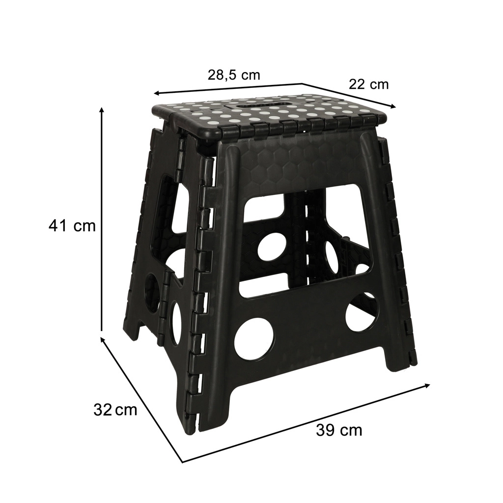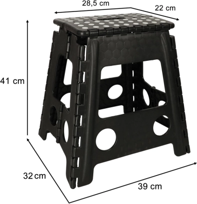 Skamlen har en højde på 39,5 cm, så du nemt når højere hylder og skabe. Med en bæreevne op til 150 kg er den velegnet til både børn og voksne. Det integrerede håndtag gør transport og håndtering lettere, mens den hurtige sammenklapningsmekanisme sparer plads.