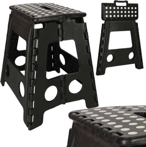 Denne praktiske sammenklappelige skammel er en ideel hjælper i køkkenet, badeværelset, værkstedet og børneværelset. De kompakte mål efter sammenklapning gør det muligt at opbevare den bag et skab eller i spisekammeret og tage den frem præcis, når du har brug for den. Skridsikre dupper på trædefladen og solid plast sikrer sikker brug.