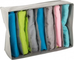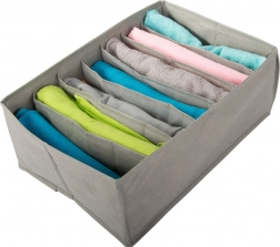 Organisator til undertøj er en smart hjælper, der sikrer, at dine garderobeskuffer forbliver overskuelige og ordnede. Den er lavet af kvalitetsstof og har forstærkede sider, hvilket sikrer dens lange levetid.