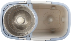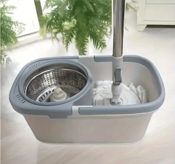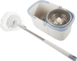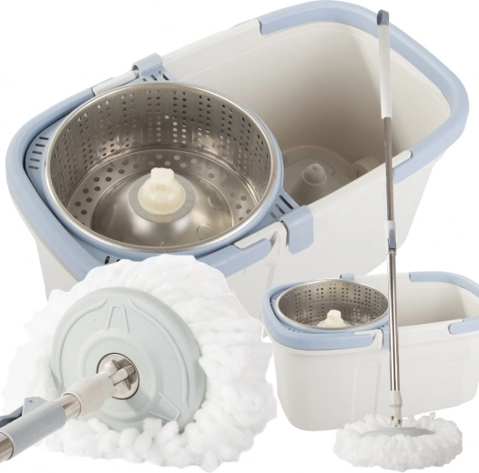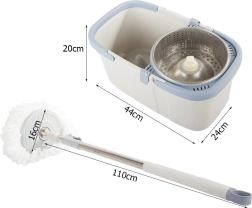 Denne roterende moppe har en justerbar bevægelig stang, der gør det nemt at rengøre selv svært tilgængelige steder. Spanden er udstyret med et roterende system, som sikrer effektiv skylning og vridning af moppehovedet.