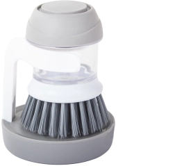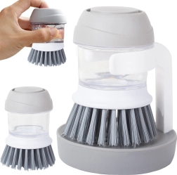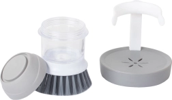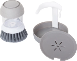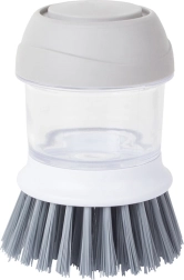 Gør opvasken hurtig og behagelig. Børsten med gennemsigtig beholder og sæbedispenser lader dig dosere opvaskemiddel direkte under skrubning – blot tryk på topknappen. Takket være de kompakte mål og det grå, minimalistiske design passer den perfekt ind i ethvert køkken.