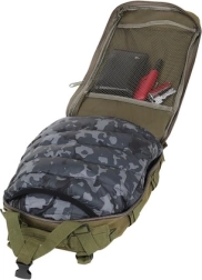 Rygsækken tilbyder mange rum, inklusive et rummeligt hovedrum, der åbner helt ned til bunden for nem adgang til indholdet.