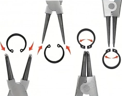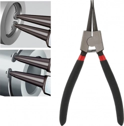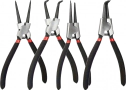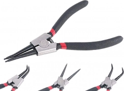 Komplet sæt låseringtænger til Seger-ringe for hurtig og sikker håndtering af både indvendige og udvendige ringe. Kvalitetskrop i stål og komfortable skridsikre håndtag øger grebssikkerheden, mens lige og bøjede spidser letter arbejdet på svært tilgængelige steder. Ideelt til auto/mc-værksteder, industri og hjemmeværksted.