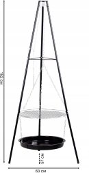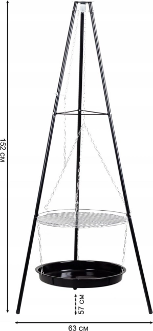 Takket være den stabile trefodskonstruktion er grillen sikker og velegnet til udendørs brug, både i haven og på camping.