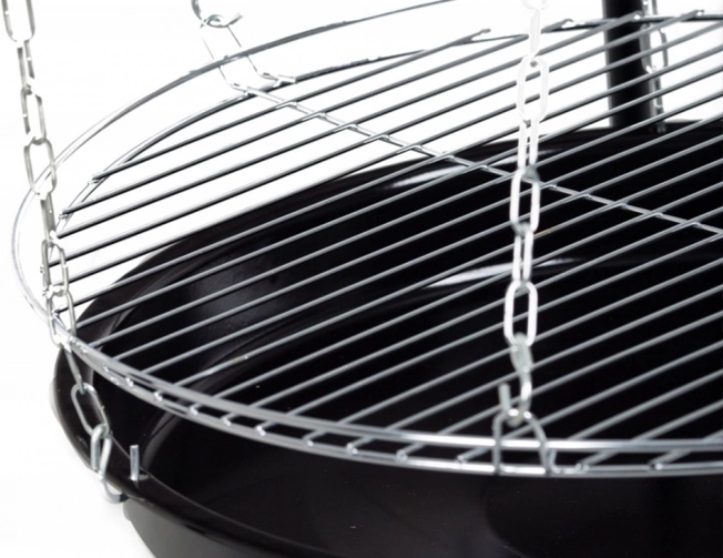 Designet med justerbar grillhøjde giver dig mulighed for at opnå den ideelle temperatur til madlavning af dine yndlingsretter. Lavet af pulverlakeret stål, modstandsdygtigt over for høje temperaturer, sikrer det holdbarhed og nem vedligeholdelse.