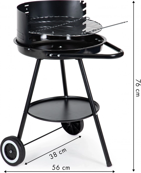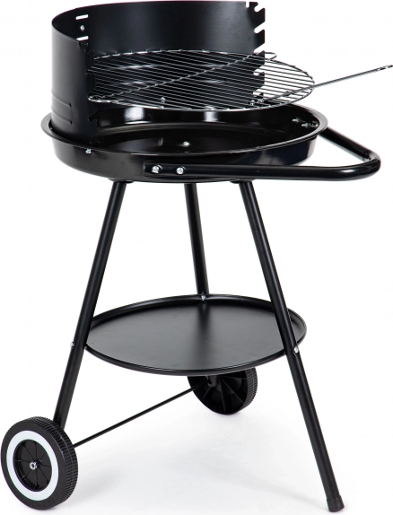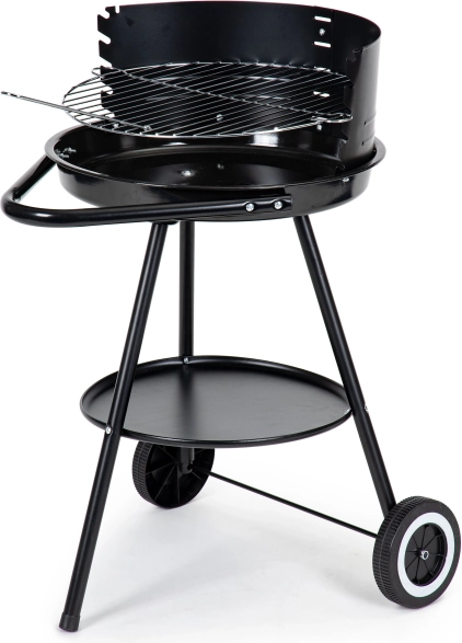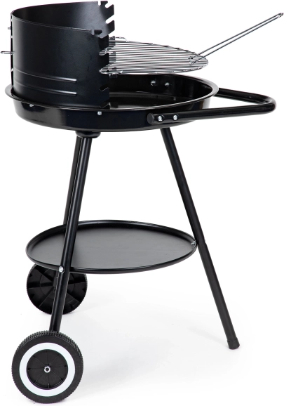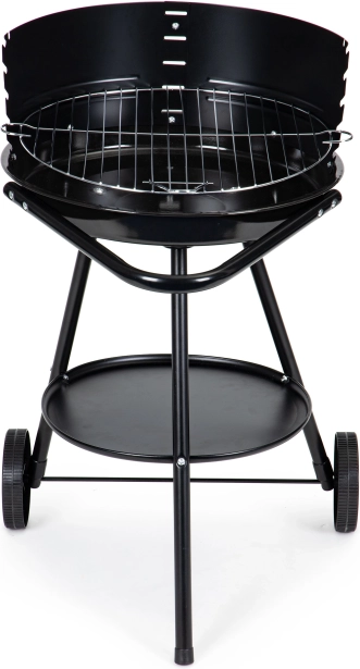 Designet med hjul tillader nem og sikker flytning af grillen, selv når den er varm. Den praktiske bundhylde giver opbevaringsplads.