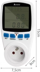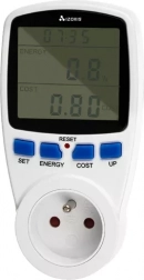 Den smarte energimåler hjælper dig med at identificere krævende apparater og optimere forbruget i hjemmet eller på kontoret. Takket være den overskuelige LCD-skærm ser du spænding (V), strøm (A), frekvens (Hz), øjeblikkelig samt minimal og maksimal effekt (W), forbrugt energi (kWh) og efter indtastning af tariffen også præcise omkostninger.