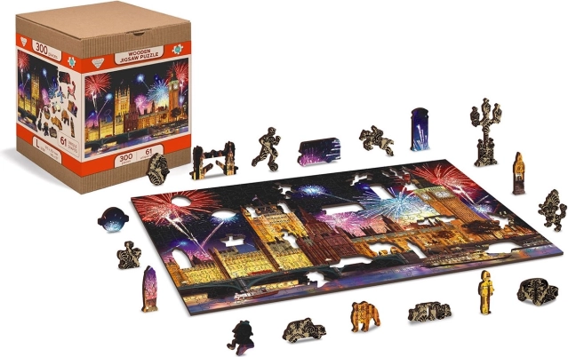 Vores træpuslespil 'London om natten med fyrværkeri' er ikke kun underholdende men også lærende og dekorativt. Den præcise udskæring sikrer lang levetid og mulighed for gentagen samling.
