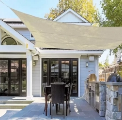 Det tæt vævede materiale begrænser gennemtrængning af solstråler og sænker temperaturen under sejlet, samtidig med at luftcirkulationen bevares for højere komfort.