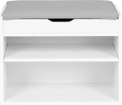 To rummelige hylder, der kan justeres i tre forskellige højder, giver plads til sko i forskellige størrelser og former. Der er også plads under sædet til hjemmesko eller mindre beklædningsgenstande som huer og tørklæder.