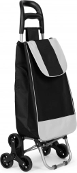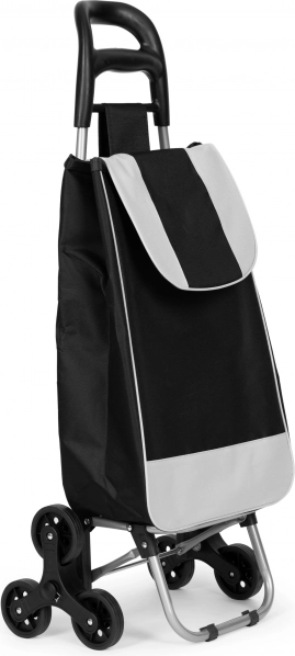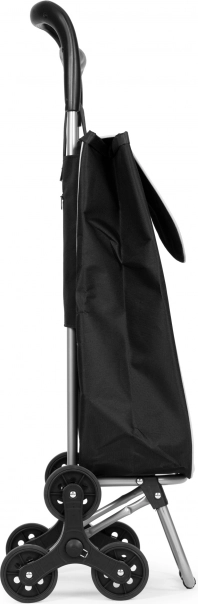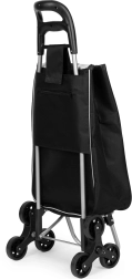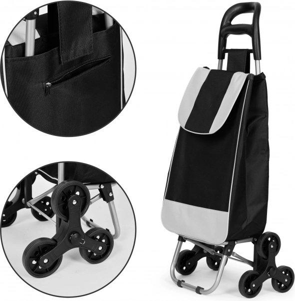 Vognen er udstyret med triple gummihjul for nem overvindelse af forhindringer som kantsten eller trapper, hvilket muliggør nem transport af dine indkøb med minimal anstrengelse.