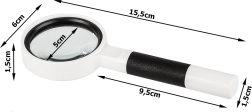 Denne alsidige lupe giver et klart og skarpt billede takket være glaslinsen og er ideel til læsning af lille skrift, kontrol af detaljer på smykker, frimærker, mønter eller ved småreparationer af elektronik. Den kompakte størrelse og lave vægt gør den til en pålidelig hjælper både hjemme og på arbejde.