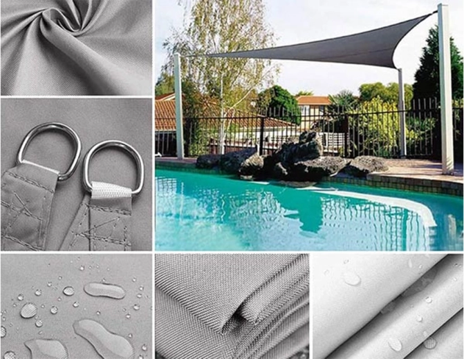 Tætvævet polyester med UV-beskyttelse skaber behagelig skygge og reducerer overophedning under sejlet – ideelt til terrasser, siddeområder og børnezoner.