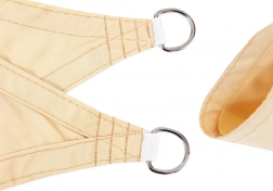 Med tre monteringssnore og D-ringe kan sejlet nemt spændes mellem vægge, stolper eller træer og vinklen justeres efter behov.