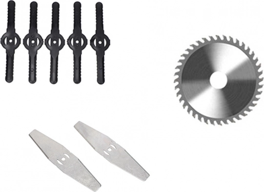 Plastblade til fin græs, metalblade til sejt ukrudt og savklinge til små grene – alt i ét sæt.