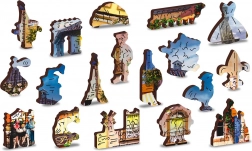 Puslespillet indeholder brikker, der repræsenterer kendte bygninger, dyr og genstande i henhold til det tematiske motiv.