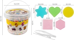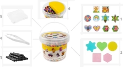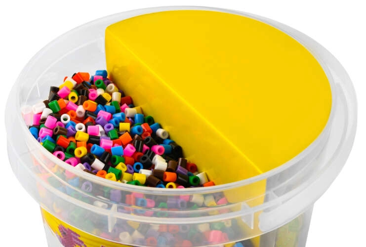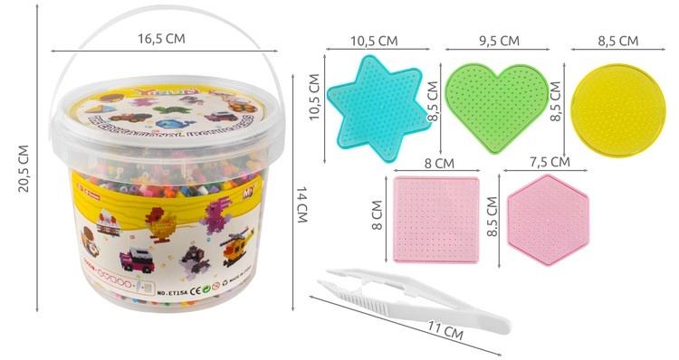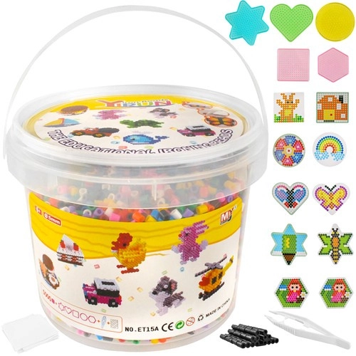 Dette omfattende sæt med strygeperler er ideelt til kreativ leg derhjemme og i børnehaver. I pakken finder du 5000 perler i ti basisfarver, praktiske skabeloner og tilbehør, som gør det nemt for børn at skabe farverige billeder, figurer og dyr. Ved at tilføje flere lag kan man også lave 3D-modeller. Den lette og kompakte emballage i en spand med låg gør det nemt at transportere og opbevare.