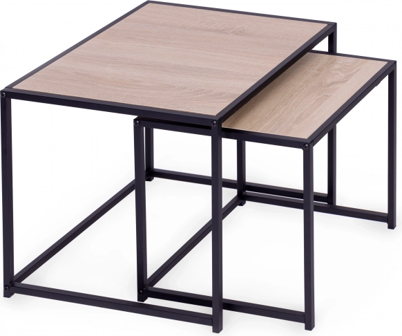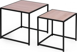Bordene har en stabil, pulverlakeret metalramme. Pladerne er lavet af spånplade og belagt med finér, der imiterer en lys brun træstruktur. Deres overflade er modstandsdygtig over for snavs og ridser og er også let at rengøre.