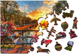 WOODEN CITY træpuslespil med Amsterdam-motiv tilbyder en unik og sjov samleværdig udfordring med 75 brikker. Specielt formede brikker giver mere sjov, og den økologiske emballage vil glæde enhver puslespilentusiast.