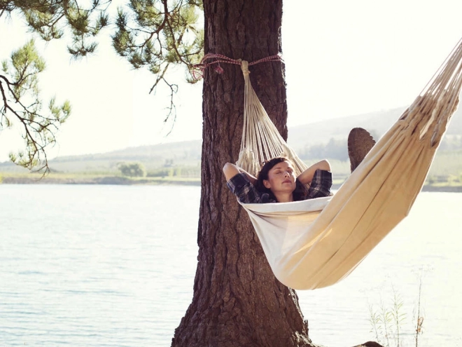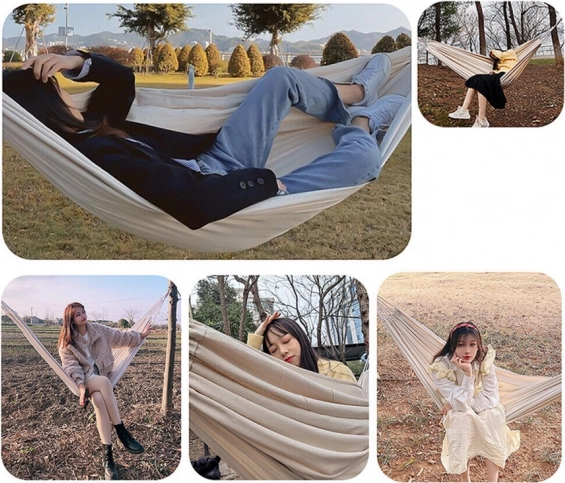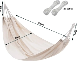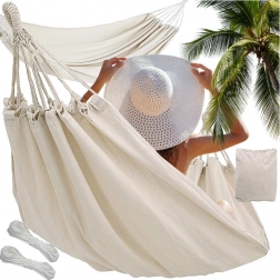 Denne rummelige hængekøje giver dig et skønt sted til afslapning efter arbejde og til weekendhygge. Det åndbare lærredsstof omfavner kroppen behageligt, samtidig med at det er tilstrækkelig stærkt og stabilt. Takket være den kompakte emballage og lave vægt kan du nemt tage hængekøjen med i sommerhus, til søen eller i parken.