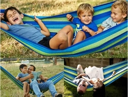 Fremstillet af robust bomuld og polyester giver denne hængekøje maksimal komfort og holdbarhed.