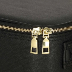 Slidstærkt tekstilmateriale, robust lynlås og praktisk håndtag beskytter din kosmetik under al transport.
