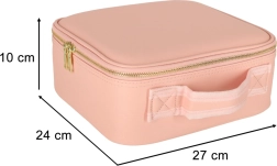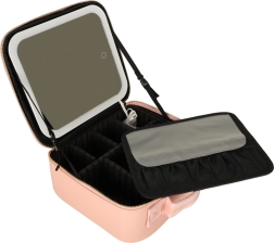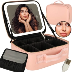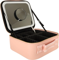 Den lyserøde makeuptaske er ideel til både rejser og daglig brug. Med LED-spejl med touchbetjening og 10× forstørrende spejl kan du justere din makeup præcist selv i dårlige lysforhold. Indvendige omkonfigurerbare rum og en lomme til pensler eller læbestifter holder alting perfekt organiseret.