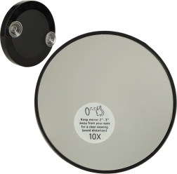 Aftageligt spejl med 10× forstørrelse til detaljeret brynpleje, eyeliner og præcis påføring af makeup.