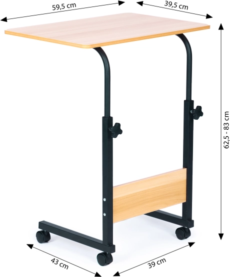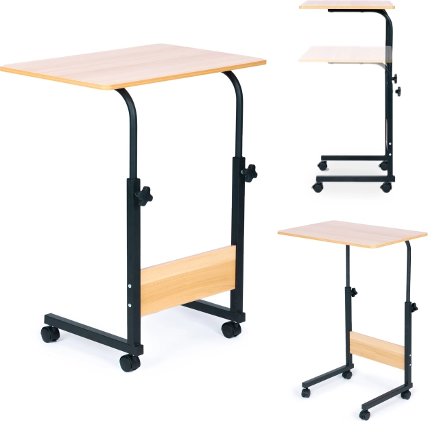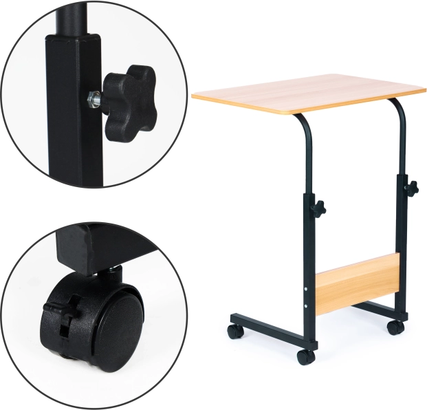 Det mobile bord til bærbar fra ModernHome tilbyder uovertruffen komfort og fleksibilitet til arbejde eller afslapning i ethvert rum i dit hjem. Takket være låsbare hjul kan det nemt flyttes og sikres for stabilitet. Højdejusterbar konstruktion giver dig mulighed for at tilpasse bordet præcis efter dine behov og sikrer ergonomisk komfort.