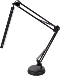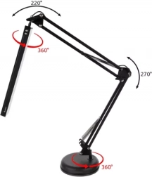 Lampen er udstyret med en fast klemme, der gør det muligt at fastgøre den på forskellige overflader, eller den kan stå på en flade takket være den praktiske base.
