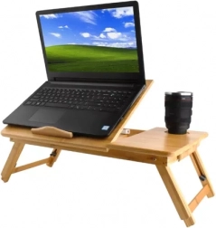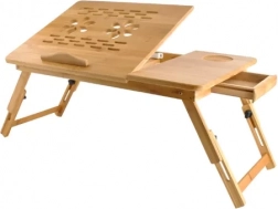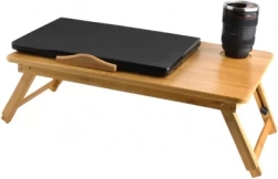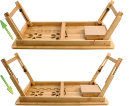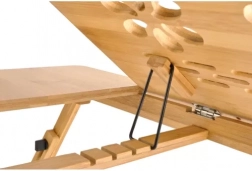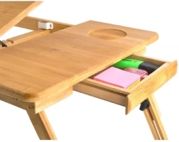 Den stabile konstruktion i naturlig bambus suppleres af en praktisk skridsikring ved hældning, en integreret skuffe til blyanter, hovedtelefoner eller USB-nøgler og også en kopholder på udvalgte varianter. Sammenklappelige ben gør det nemt at transportere og opbevare. En fremragende løsning til seng, sofa samt tog, bus eller fly.