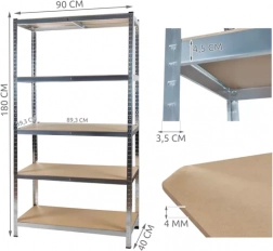 En stabil reol af galvaniseret stål og kraftige MDF-hylder klarer høj belastning og daglig brug. Hver hylde er forstærket med en tværbjælke for øget stabilitet, og gummifødder beskytter gulvet og forhindrer glid. Takket være huller for hver 3 cm kan du nemt justere hyldehøjden præcist efter det, der opbevares.