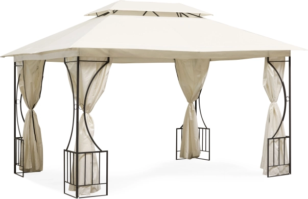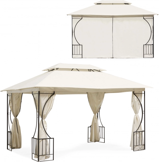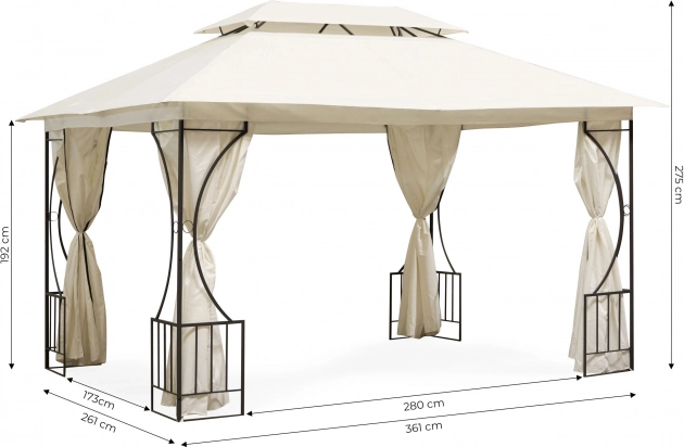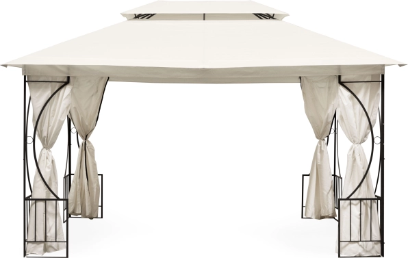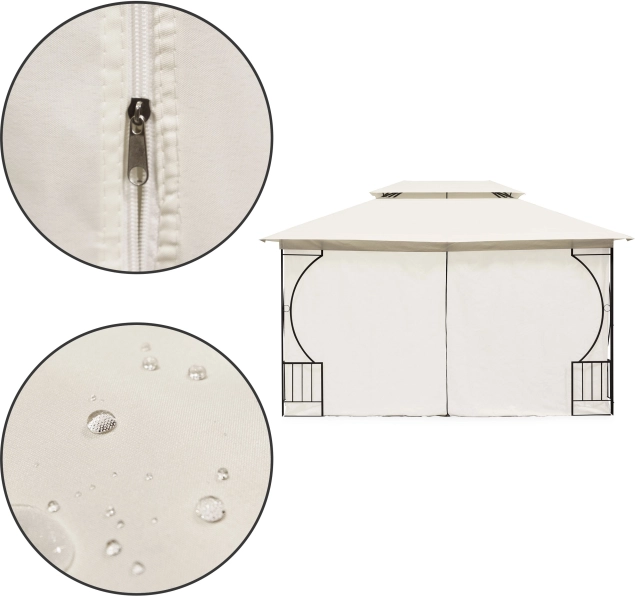 Nyd behageligt udeliv uanset vejret. Denne havepavillon kombinerer elegant design med holdbare materialer – den pulverlakerede stålramme sikrer lang levetid, og taget med dobbelt ventilation giver en behagelig luftstrøm. Sidevægge med lynlås muliggør hurtig lukning for privatliv og bedre beskyttelse.
