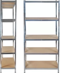Robust lagerreol MALATEC med mål 220 × 100 × 45 cm tilbyder 5 justerbare hylder i MDF og en galvaniseret stålramme med høj stabilitet. Hver hylde bærer op til 175 kg (i alt 875 kg), og monteringen er skruefri og hurtig. Ideel til garage, kælder, værksted og lager.