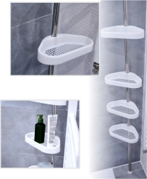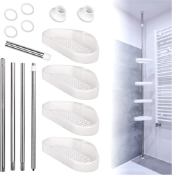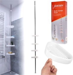 Denne teleskopiske hjørnehylde udnytter smart hver centimeter plads i bruseren. Takket være fjederklemmen mellem gulv og loft installerer du den på et øjeblik uden boring, skruning eller skader på fliserne. Fire rummelige plastkurve med drænhuller forhindrer vandophobning, så de er lette at holde rene.
