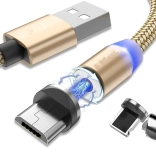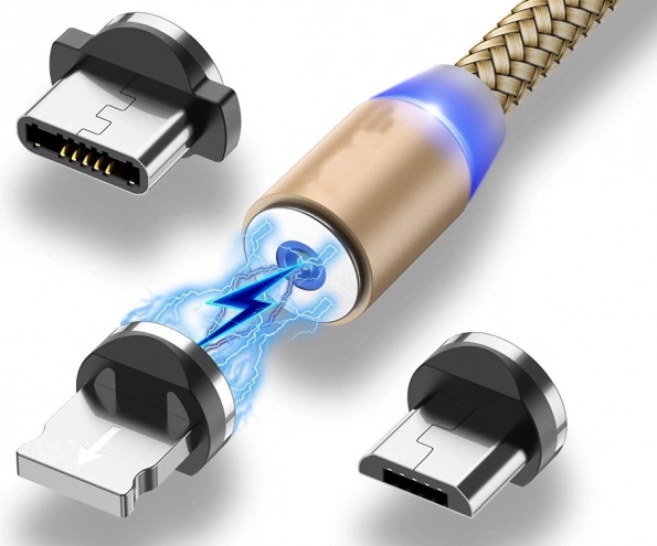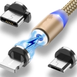 Dette multifunktionelle magnetiske kabel er den perfekte løsning til opladning af alle typer mobile enheder. Takket være tre forskellige stik er det kompatibelt med de mest almindelige porte – micro USB, type-C og Lightning. Hurtig opladning (Quick Charge 2.0 og ældre versioner) sikrer effektiv energitilførsel til dine enheder.