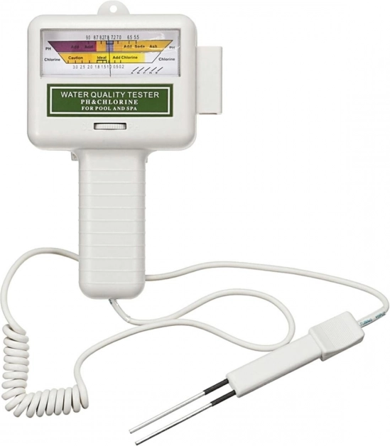 Højkvalitets poolmåler til pH og klor hjælper dig med at holde vandet i perfekt stand til svømning. Præcis og nem måling, som er mobil og sikker takket være drift på AA-batteri.