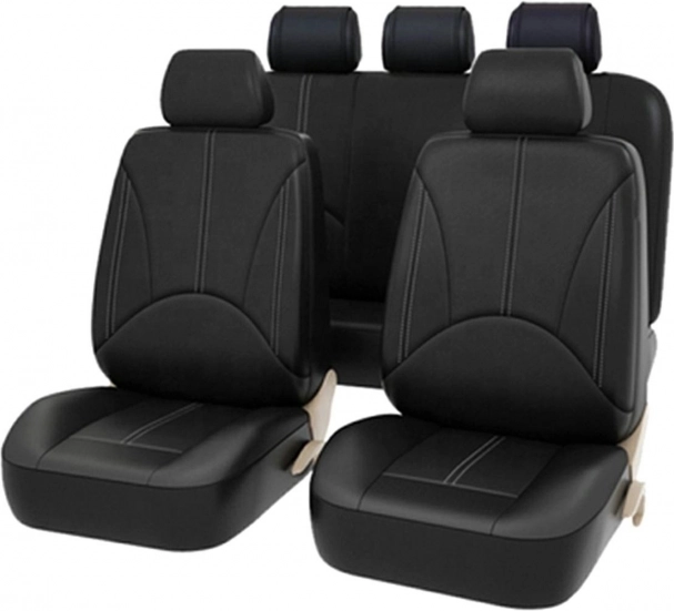 En smuk og usædvanligt universel bilsædeovertrækssæt af økolæder! Det giver en meget enkel og økonomisk måde at skjule skader på det originale fabriksbetræk. Det egner sig også til at gøre bilens interiør mere attraktivt eller give det en let opfriskning. Takket være økolæderet tilfører det stil og elegance til biler med almindeligt, fabriksmonteret velourbetræk.
