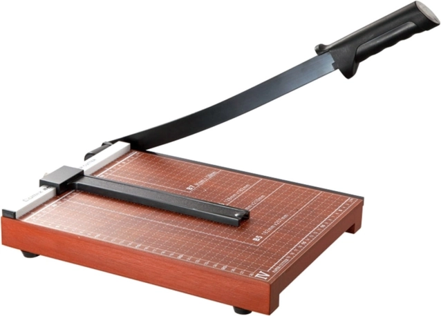 Håndbetjent papirguilotine i træ. Muliggør nem og hurtig skæring af papir til den rigtige størrelse!