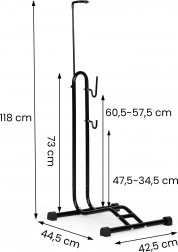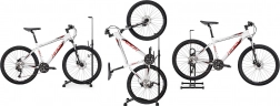 Specielt justerbare holdere på stativet tilpasser dets størrelse til både by-, bjerg- og landevejscykler. Holderne er udstyret med blødt materiale for at beskytte cykelrammen mod ridser.