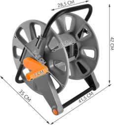 Den er udstyret med en central kobling til lynkoblinger og et praktisk håndtag. Let konstruktion sikrer nemme flytninger. Med denne vogn vil du altid have orden i haven og din slange vil være beskyttet mod at blive viklet sammen.