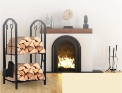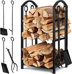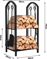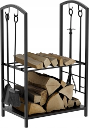 Standeren indeholder to etager for maksimal udnyttelse af pladsen, hvor du kan placere træ eller andet pejsetilbehør.