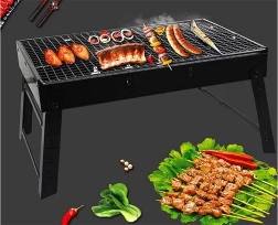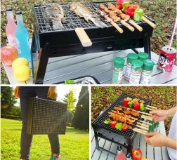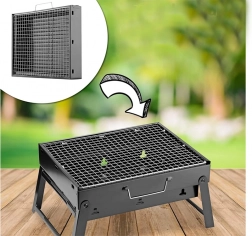 Den bærbare grill kan nemt foldes sammen som en kuffert, hvilket sikrer nem transport og opbevaring.