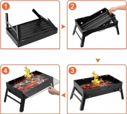 Nyd ubekymret grillning med denne bærbare sammenklappelige grill. Dens kompakte design, der nemt kan klappes sammen til en kuffert, muliggør let transport og pladsbesparelse. Materialer af høj kvalitet sikrer modstandsdygtighed overfor vejrpåvirkninger, hvilket gør den egnet til helårsbrug.