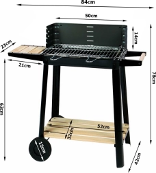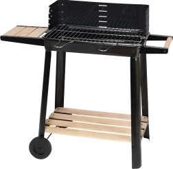 Grillen er udstyret med en justerbar rist, som kan justeres til fem forskellige niveauer, hvilket giver mulighed for perfekt tilberedning af retter efter dine præferencer. De træhuse på siderne giver rigelig plads til forberedelse.