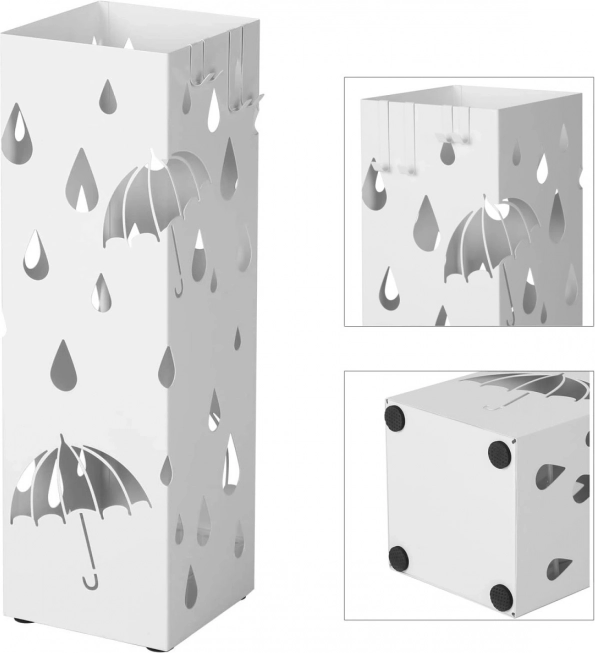 Udstyret med skridsikre fødder beskytter holderen gulvet mod skader og fugt. Den aftagelige plastikbeholder til vand sikrer, at alt vand fra våde paraplyer bliver i drypbakken.