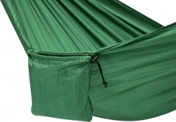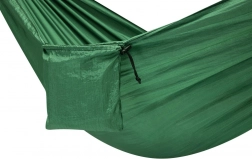 Hængekøjen er nem at pakke sammen i dens tilhørende taske og er udstyret med en sidelomme, hvor du kan opbevare småting som en telefon. Den kan bruges ikke kun til camping, men også i haven eller på terrassen.