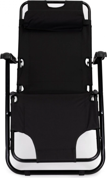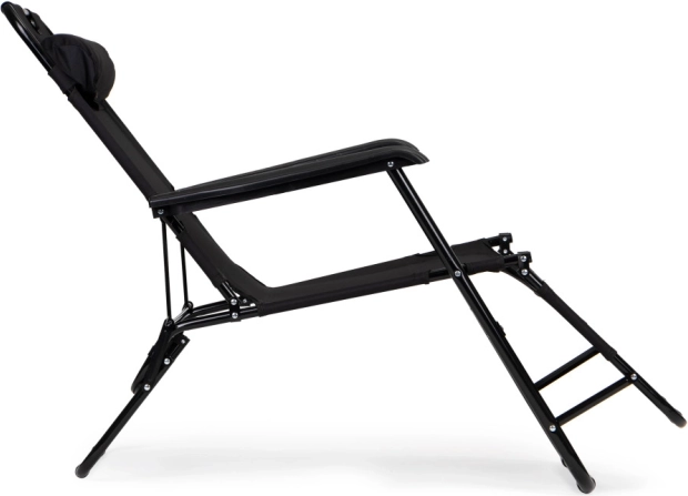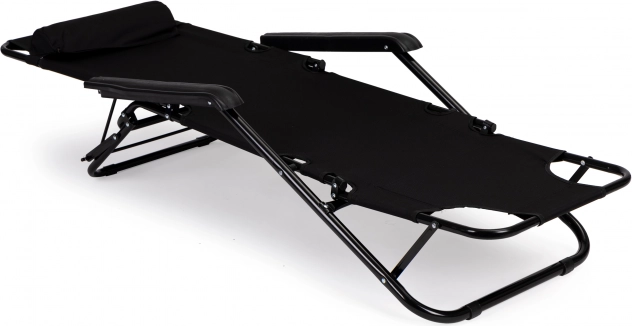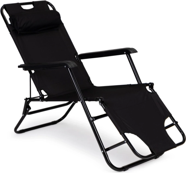 Hovedstøtte - Den medfølgende hovedstøtte forbedrer komforten under afslapning. Puden giver fremragende støtte til nakke og hoved. Liggestolen er lavet af solidt stof, der tilpasser sig din krop og giver dig endnu mere behagelig udendørs afslapning. Takket være det foldbare design er liggestolen ideel til ferier og let at opbevare efter sommersæsonen, hvilket sparer værdifuld plads.