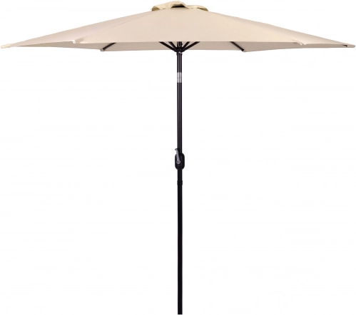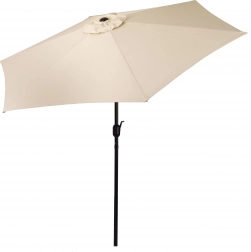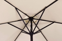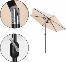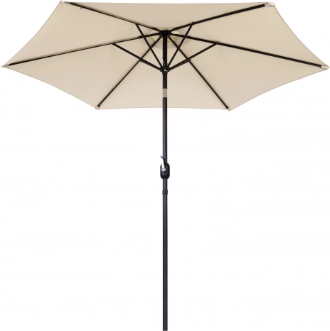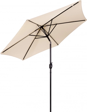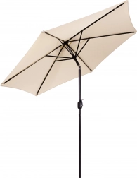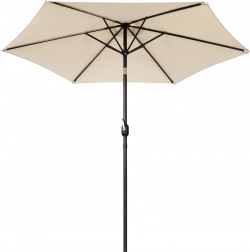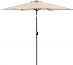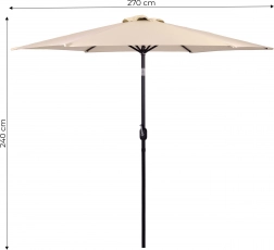 Det kvalitetsstærke betræk af polyester 160 g/m² tåler sol og let regn, den robuste stålramme (ø 38 mm) med seks ribber holder formen og giver stabilitet. Det minimalistiske design og den beige farve passer til terrasse, have, altan og camping.